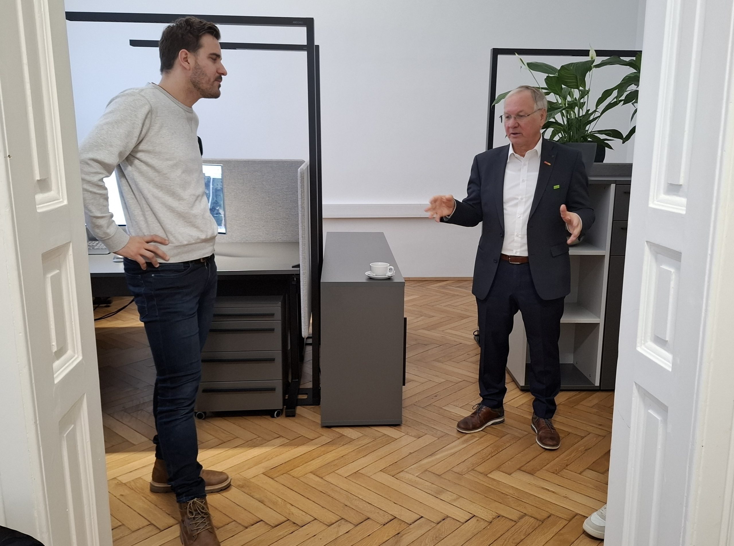 Anlässlich der Übersiedlung unseres Unternehmens nach Feldbach durften wir Herrn Bürgermeister Prof. Ober in unserem neuen Büro willkommen heißen. Der Besuch bot Gelegenheit zum persönlichen Austausch über die regionale Entwicklung, zukünftige Projekte und die Bedeutung moderner Arbeits- und Unternehmensstandorte in der Region.